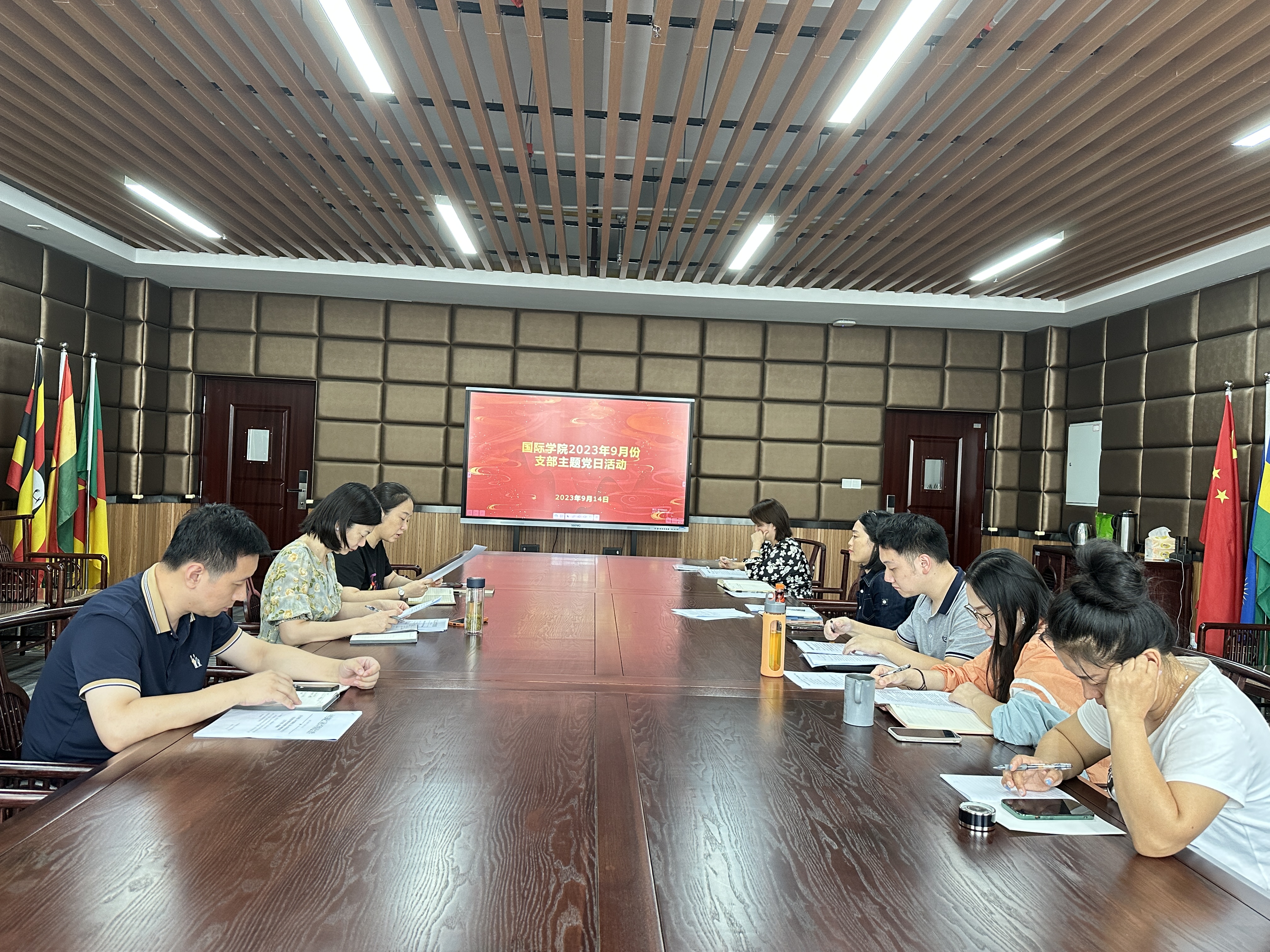 2023年9月14日(星期四)下午,国际学院党支部在学院第一会议室开展“持续加强基层党组织和人才队伍建设,助推学校事业高质量发展”支部主题党日活动。本次活动由国际学院院长杨霞主持,党支部全体党员参与学习。