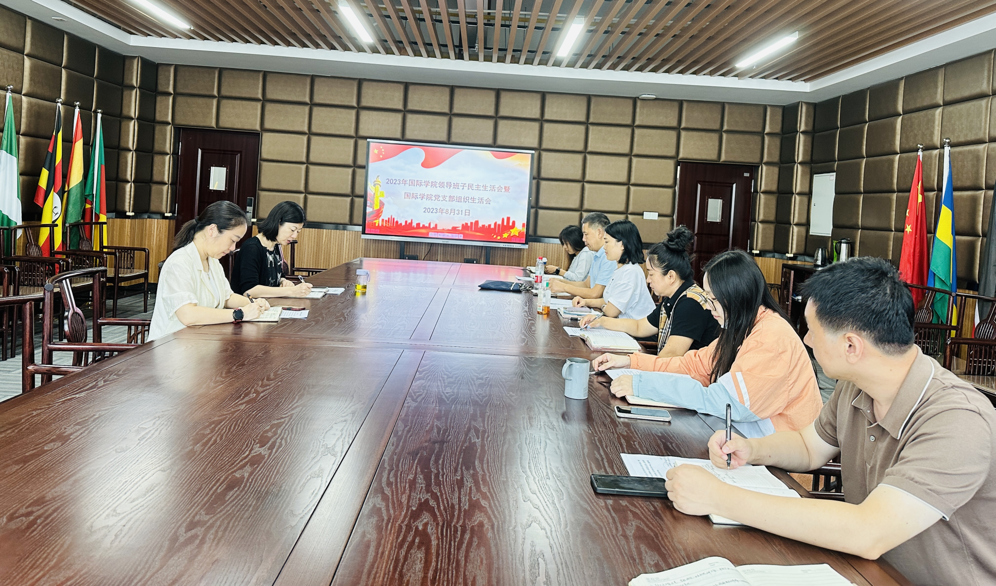 根据校党委《关于印发<中共湖北工业大学委员会关于在学习贯彻习近平新时代中国特色社会主义思想主题教育中开好专题民主生活会的实施方案>的通知》相关要求,2023年8月31日下午,国际学院党支部在学院大会议室召开“学习贯彻习近平新时代中国特色社会主义思想,坚持不懈用习近平新时代中国特色社会主义思想凝心铸魂”为主题的领导班子民主生活会暨党支部组织生活会。国际学院院长、党支部书记杨霞主持会议,国际学院领导班子成员及全体党员教职工参加此次会议。