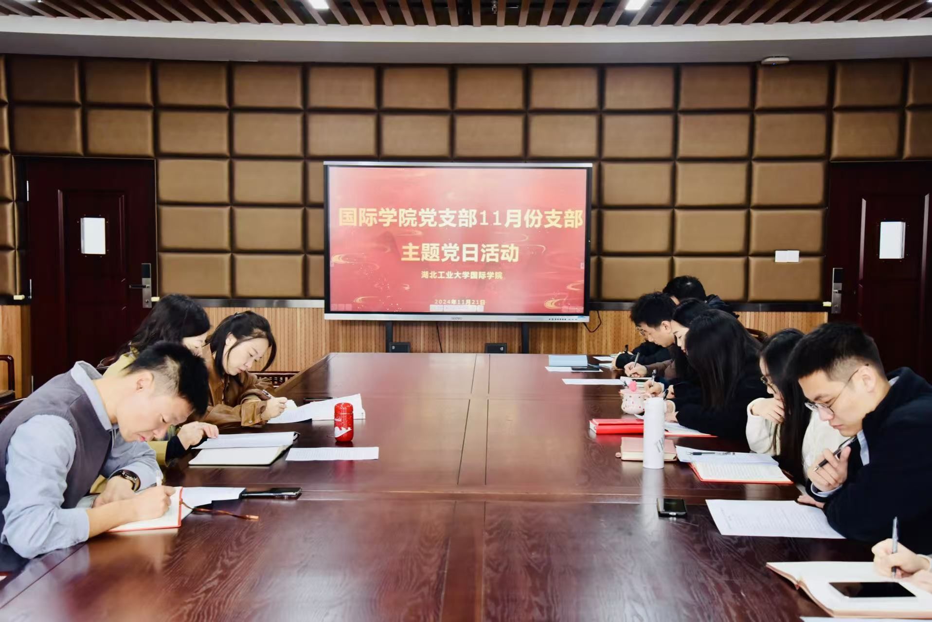 2024年11月21日(星期四)上午,国际学院党支部在学院大会议室召开以“守正创新促改革 凝心聚力担使命”为主题的支部主题党日活动。此次活动由国际学院院长、党支部书记杨霞主持,全体党支部成员参会。