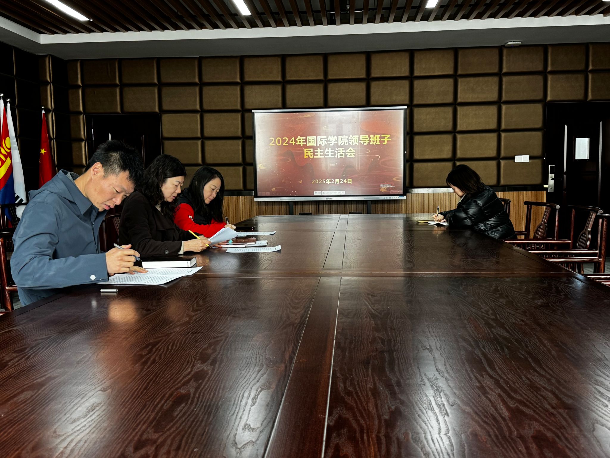 2月24日上午,国际学院在教7A-329会议室召开2024年党员领导干部民主生活会。学院全体领导班子参加会议,学院党支部书记杨霞主持会议。