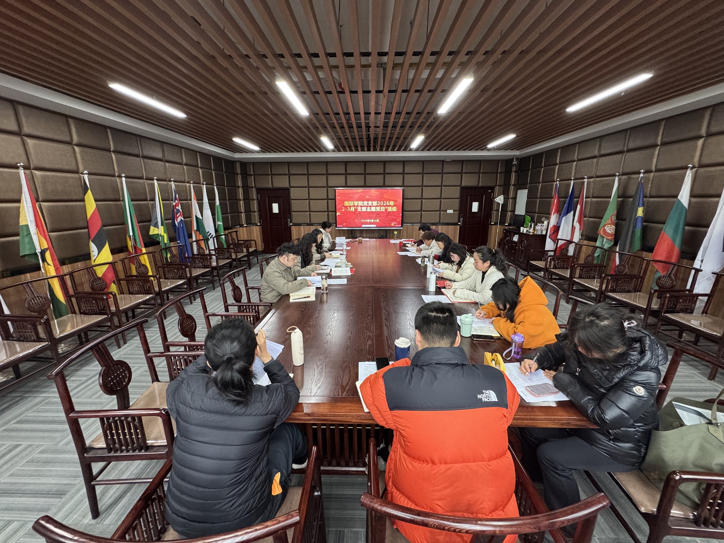 为深入学习贯彻习近平总书记关于树立和践行正确政绩观的重要论述,全面落实中央、省委及学校党委关于开展正确政绩观学习教育的部署要求,3月16日上午,国际学院党支部在教 7A-320会议室开展2026年2-3月支部主题党日活动,本次活动由杨霞主持,全体党员同志参会。
