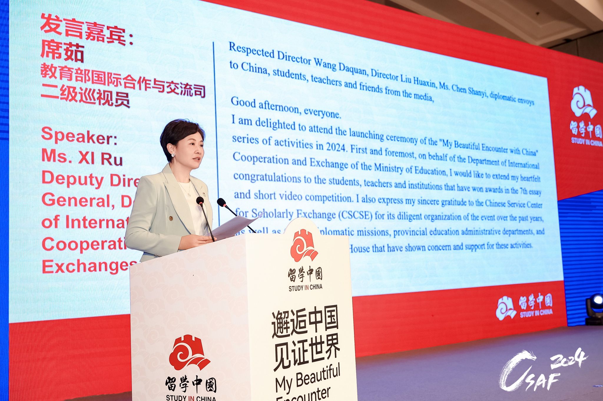 2024年4月12日,由教育部国际合作与交流司指导、教育部留学服务中心主办的第七届“我与中国的美丽邂逅”来华留学生系列活动颁奖典礼暨2024年系列活动发布仪式在北京成功举办。教育部国际合作与交流司、教育部留学服务中心、人民日报社、泰国驻华大使馆、中国——上海合作组织经贸合作示范区管委会等单位领导嘉宾、获奖学生及院校代表、相关国家驻华使馆教育处官员及相关合作机构代表约180人参加活动。