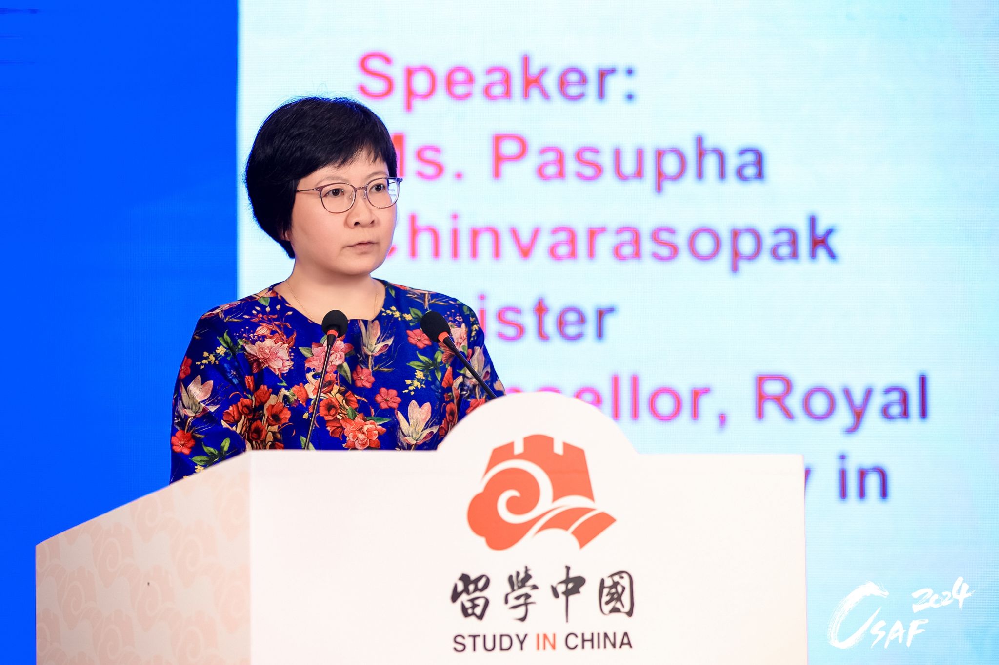 教育部国际合作与交流司二级巡视员席茹、教育部留学服务中心主任王大泉、人民日报出版社社长刘华新、泰国驻华大使馆公使衔参赞陈善意、中国——上海合作组织地方经贸合作示范区管委会副主任郝国新出席活动并致辞。