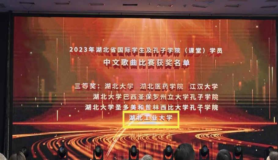 “2023年湖北省国际学生及孔子学院(课堂)学员中文歌曲比赛”和“2023年湖北省国际学生及孔子学院(课堂)学员‘湖北文旅大使’比赛”由湖北省教育厅,湖北省文旅局和孔子学院联盟、教育国际交流协会共同主办。来自不同国家、语言、肤色的留学生们歌唱传播武汉国际形象,表达自己对武汉这座城市的浓厚情谊。此次比赛参与人员之多,题材选取范围之广,我校学生在这次比赛中积极参与,充分表现了他们对武汉的热爱和对中国深厚的情感,培养了他们知华,友华,爱华的情怀。