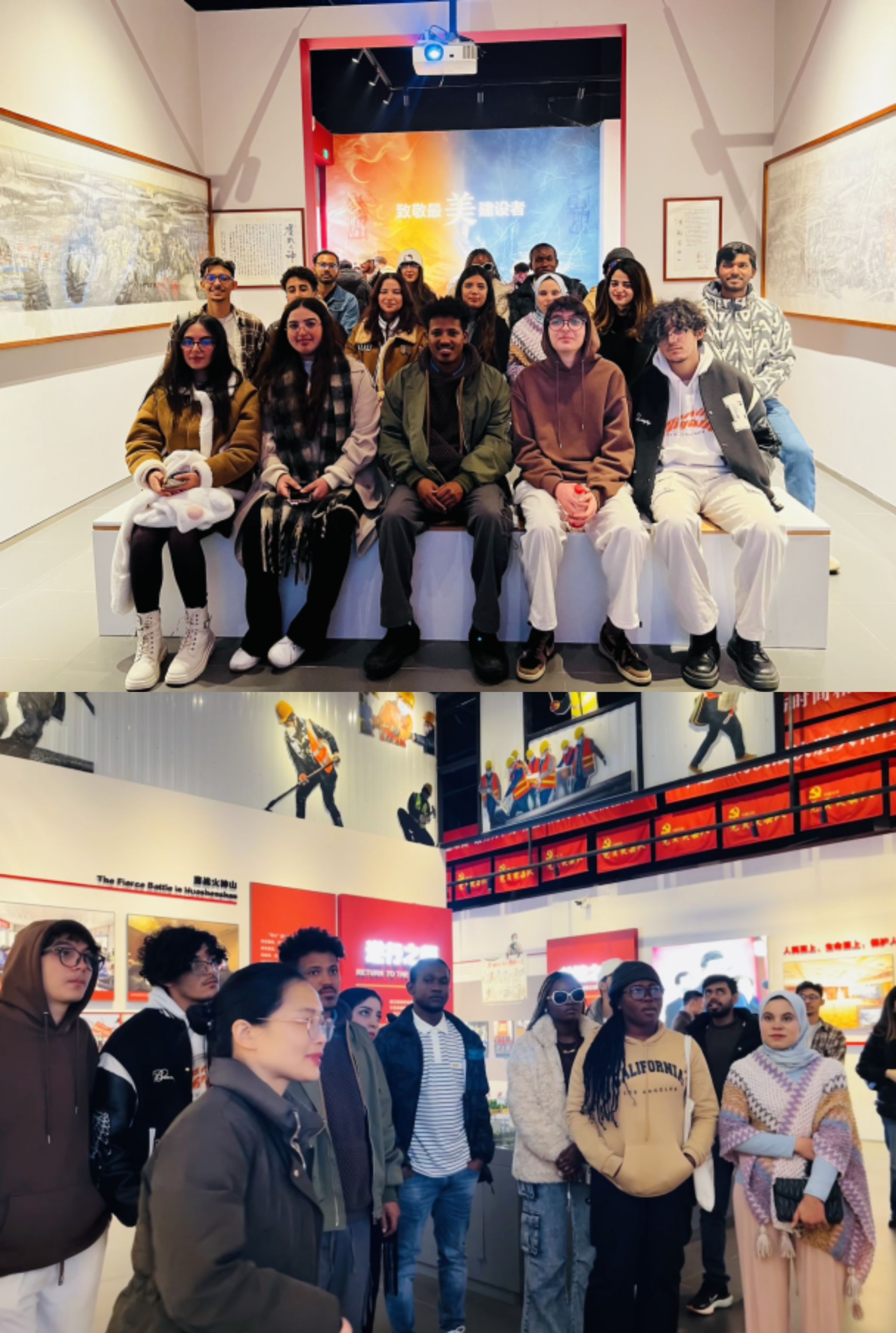 “火神山·雷神山建设纪实”专题馆向国际学生展示了疫情期间,在党的带领下,中国人民众志成城抗击疫情,两周内分别建立了火神山和雷神山医院,大量医护工作人员不分昼夜抗击新冠,阻断传染,彰显中国速度和中国人民的凝聚力。学生们看到记录图片和隔离的病房模型,都感叹中国对待防疫做出的巨大努力和成效。这个是大家印象最深的场馆,因为在这个时期也有学生在中国学习生活,正是中国人民团结一心,医护人员和共产党员“舍小家顾大家”,日夜奋斗在疫情防控一线,用自己的奉献甚至牺牲才挽救了更多的生命。