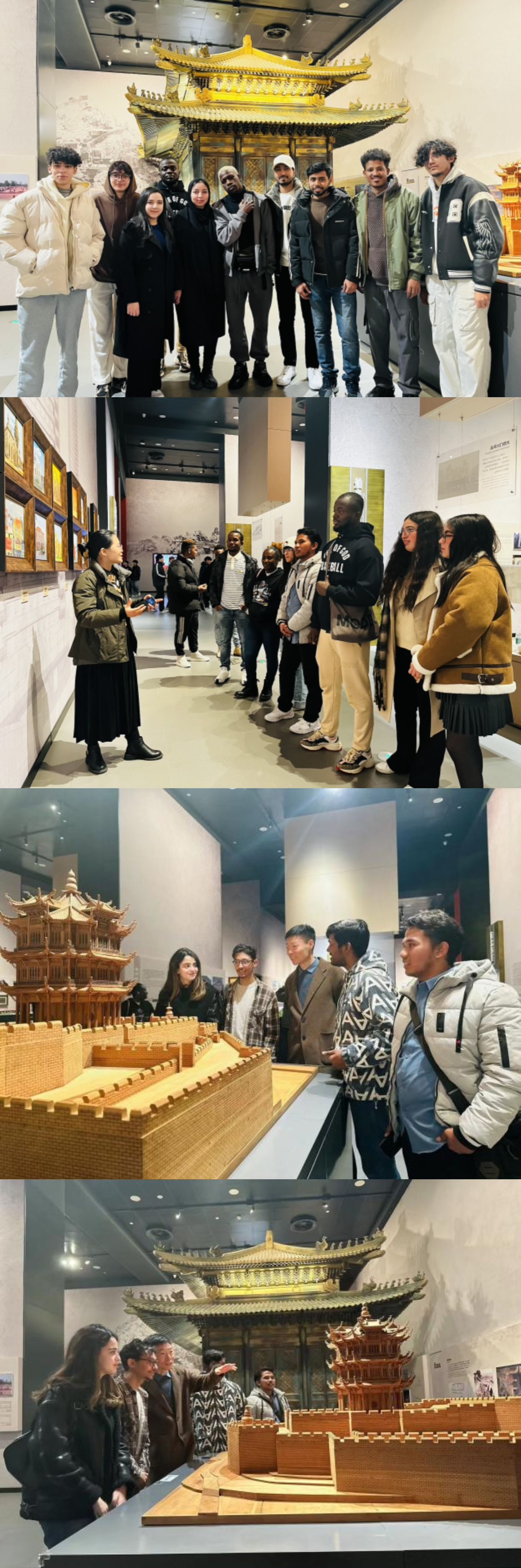 木质结构建筑的斗榫合缝,古人巧思流转之精妙,巧在古代建筑展厅,同学们都感叹夺天工,正所谓‘岂惟成风之斫,妙思通神’。和古代中国建筑文化进行美丽邂逅,给了国际学生极大的震撼,让大家感受到了大国建筑之美学;能在中国这样有着悠久历史的大国学习和生活,让大家的自豪感、骄傲感油然而生。