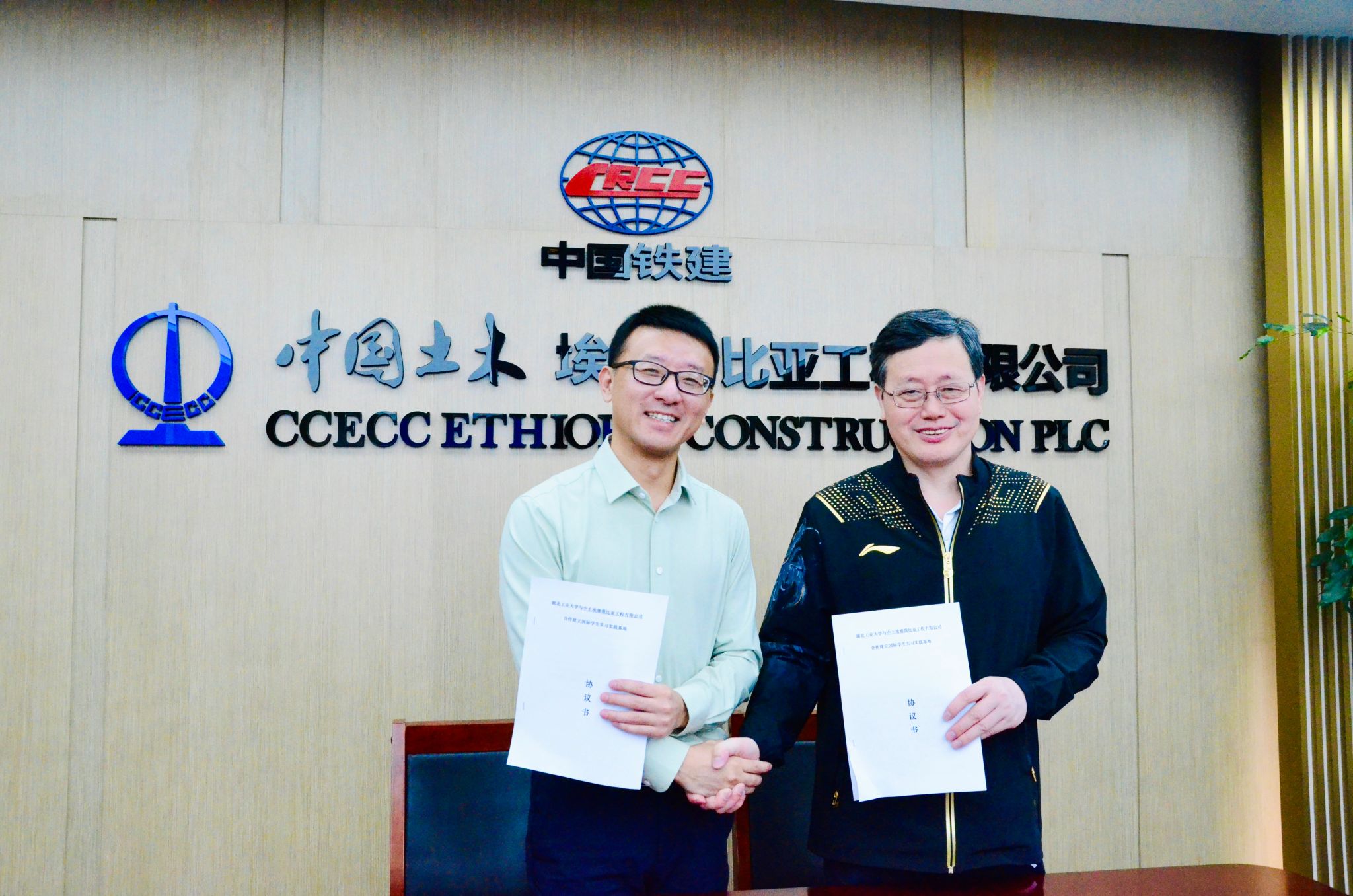 在埃塞俄比亚,代表团一行考察了中土埃塞俄比亚工程有限公司。座谈会上,公司党委副书记、纪委书记、工会主席张云龙与龚发云就联合培养国际人才和共建国际学生实习实践基地等事宜进行了深入交流,双方共同签署了《湖北工业大学与中土埃塞俄比亚工程有限公司合作建立国际学生实习实践基地协议书》。
