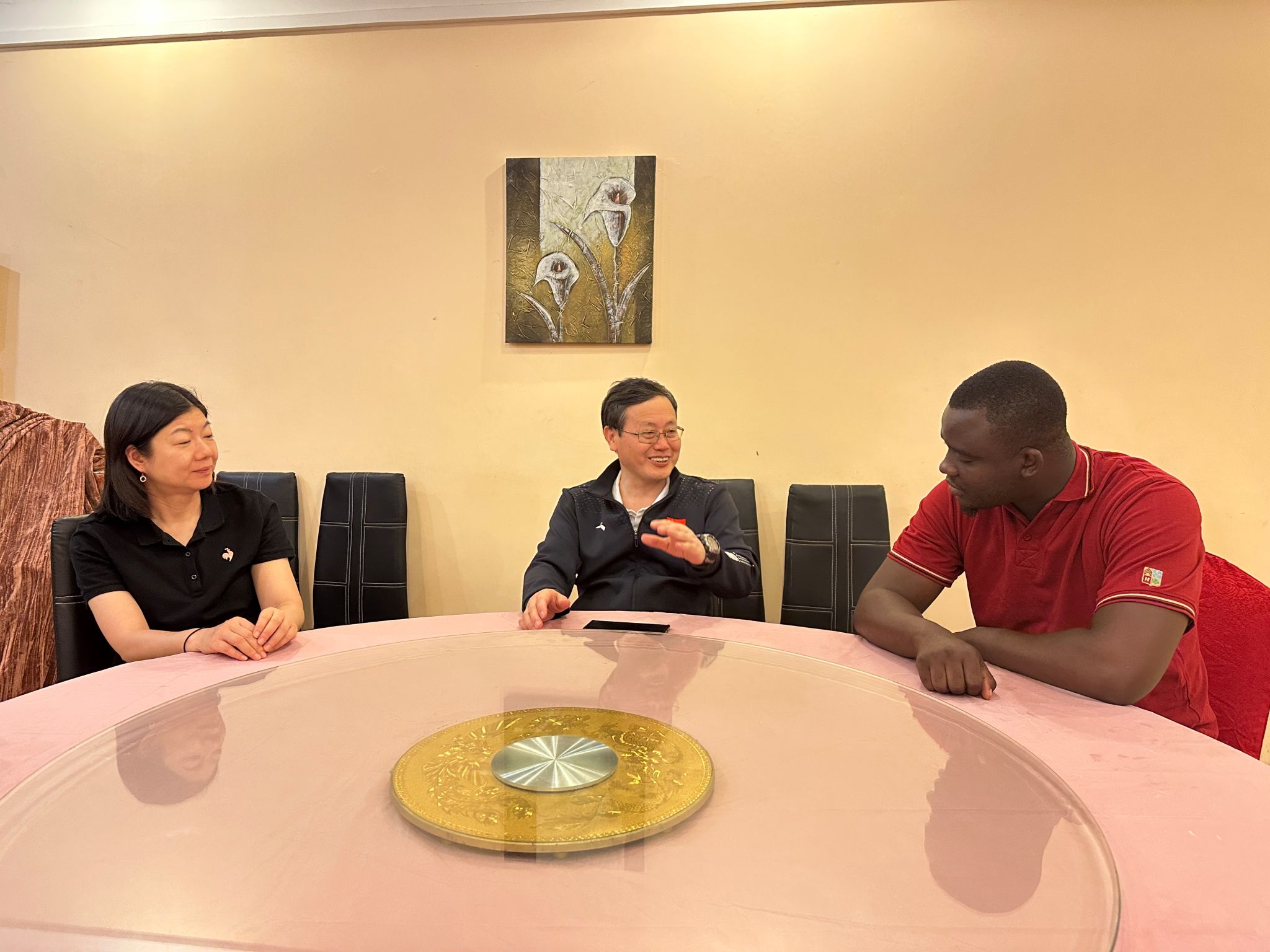 在哈拉雷,龚发云一行还走访了中津交流中心,看望了津巴布韦优秀校友代表、中铁九局津巴布韦项目部人力资源总监2013级会计学专业本科生SIBVE TAKADII SAMSON,详细了解了津巴布韦校友们的发展情况,探讨校企合作事宜,勉励他们为中津两国发展做出积极贡献。