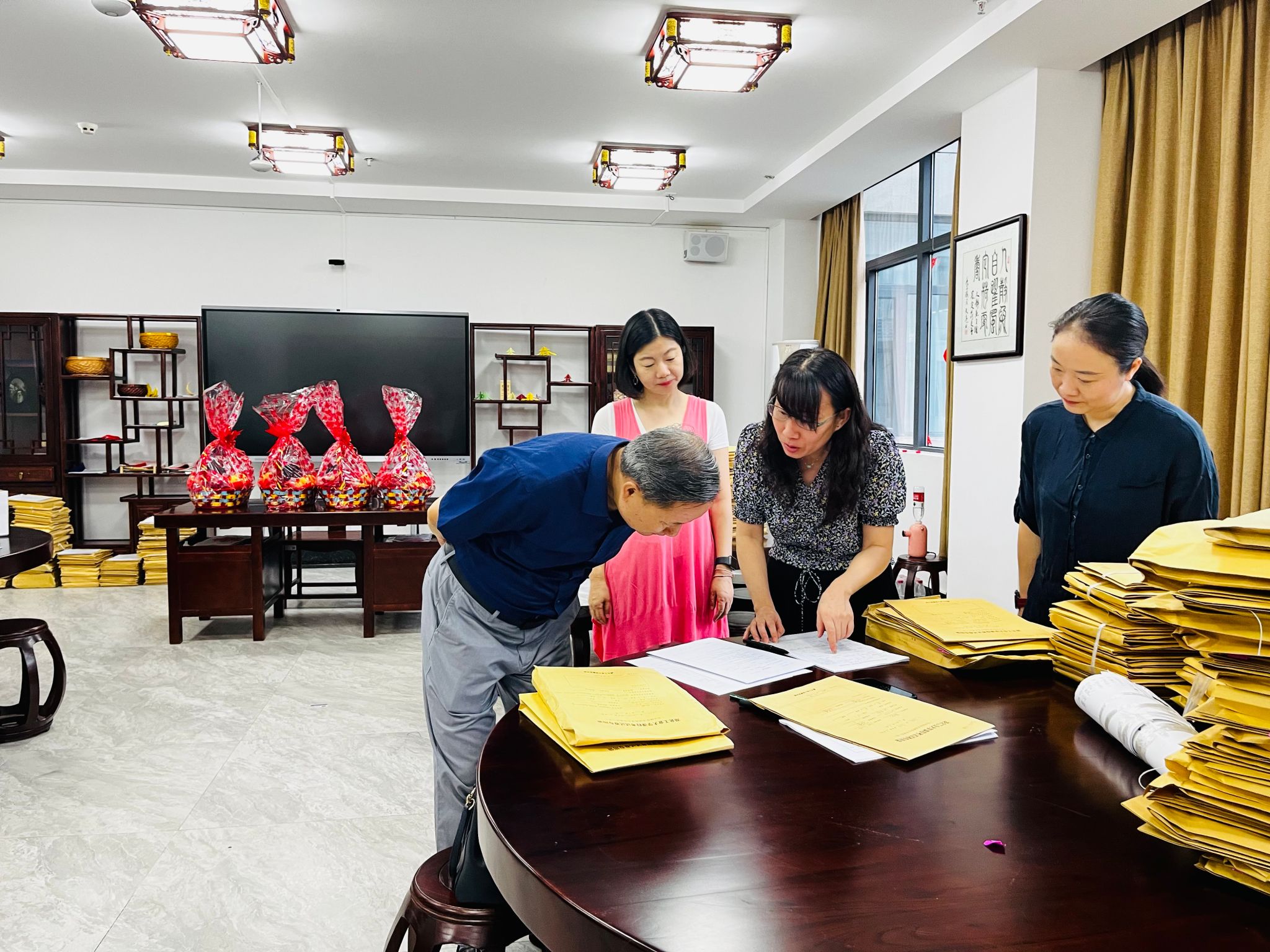 彭书记在国际学院三楼会议室实地了解了来华留学质量再认证工作的进展情况,就质量再认证对来华留学教育工作和学校发展的重要性与学院领导进行深入交谈。随后前往试卷督查现场,对试卷审核标准与教学督导进行沟通,并给予指导。他代表学校党政向暑期坚守岗位、紧锣密鼓备战来华留学质量认证的全体教职工表示感谢,并为各位老师送上防暑降温用品。