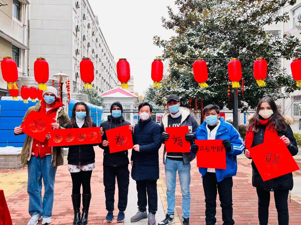 四海笙歌辞旧岁,五洲学子迎新春。春节慰问暨文化体验活动是国际学生系列活动之一,也是我校一直传承的特色活动,旨在丰富国际学生的寒假生活,让身在异国他乡的国际学生度过一个温馨、祥和的春节。同学们其乐融融,亲身感受中国年味和中国文化的魅力,他们用一张张纸窗花、一条条中国结、一副副新春联,表达了对新年的祝福、对学校的感谢、对中国的热爱。