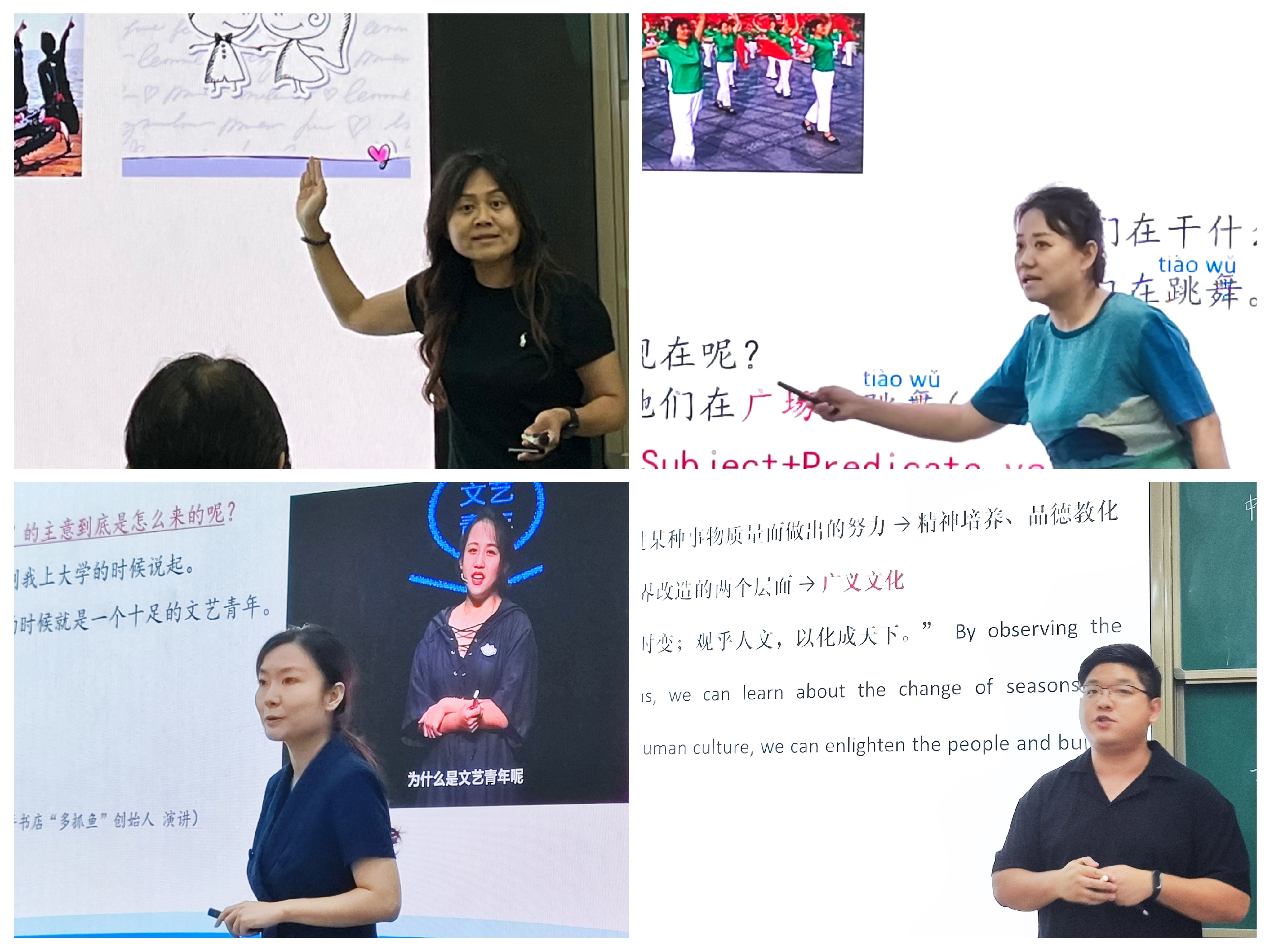 我院国际中文教育系的张倩等四位教师选手参与了本次竞赛,呈现了《HSK4》、《初级汉语读写》、《高级综合汉语》、《中国文化概论》等形式多样、内容丰富的汉语言文化课程。教师们从语言习得规律、汉字发展历史、语用技能训练、中华文化探源等不同角度展示了自己的教学能力与对国际中文教育事业的深入理解。本次竞赛特别加入了师德师风考察环节,选手们通过自己对师德相关案例的评析分享自己对于教师职业道德的见解。