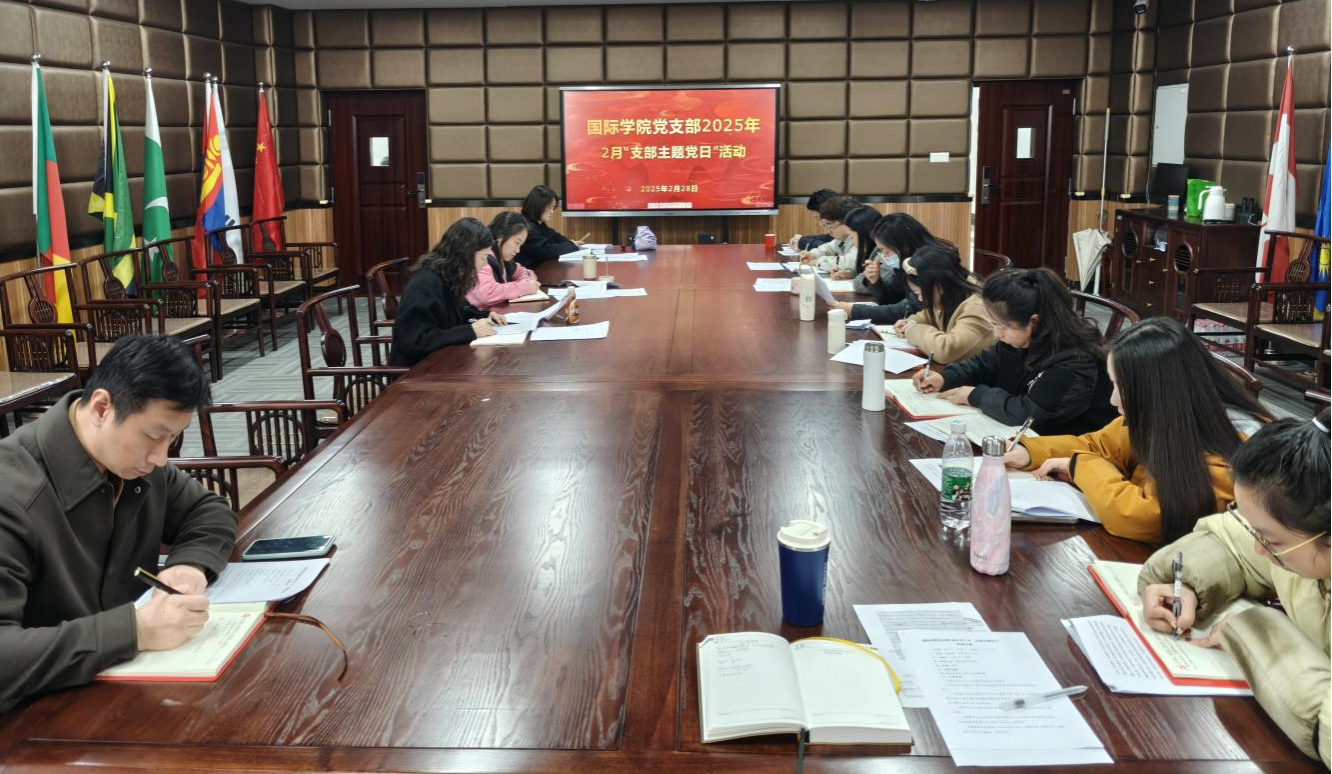 为深入学习贯彻习近平新时代中国特色社会主义思想,进一步加强党支部建设,国际学院党支部于2025年2月28日(星期五)下午,在学院第一会议室7A-320开展了以“凝心聚力开新局 创先争优谱新篇”为主题的支部主题党日活动。本次活动由支部书记杨霞主持,全体党员参加了会议。