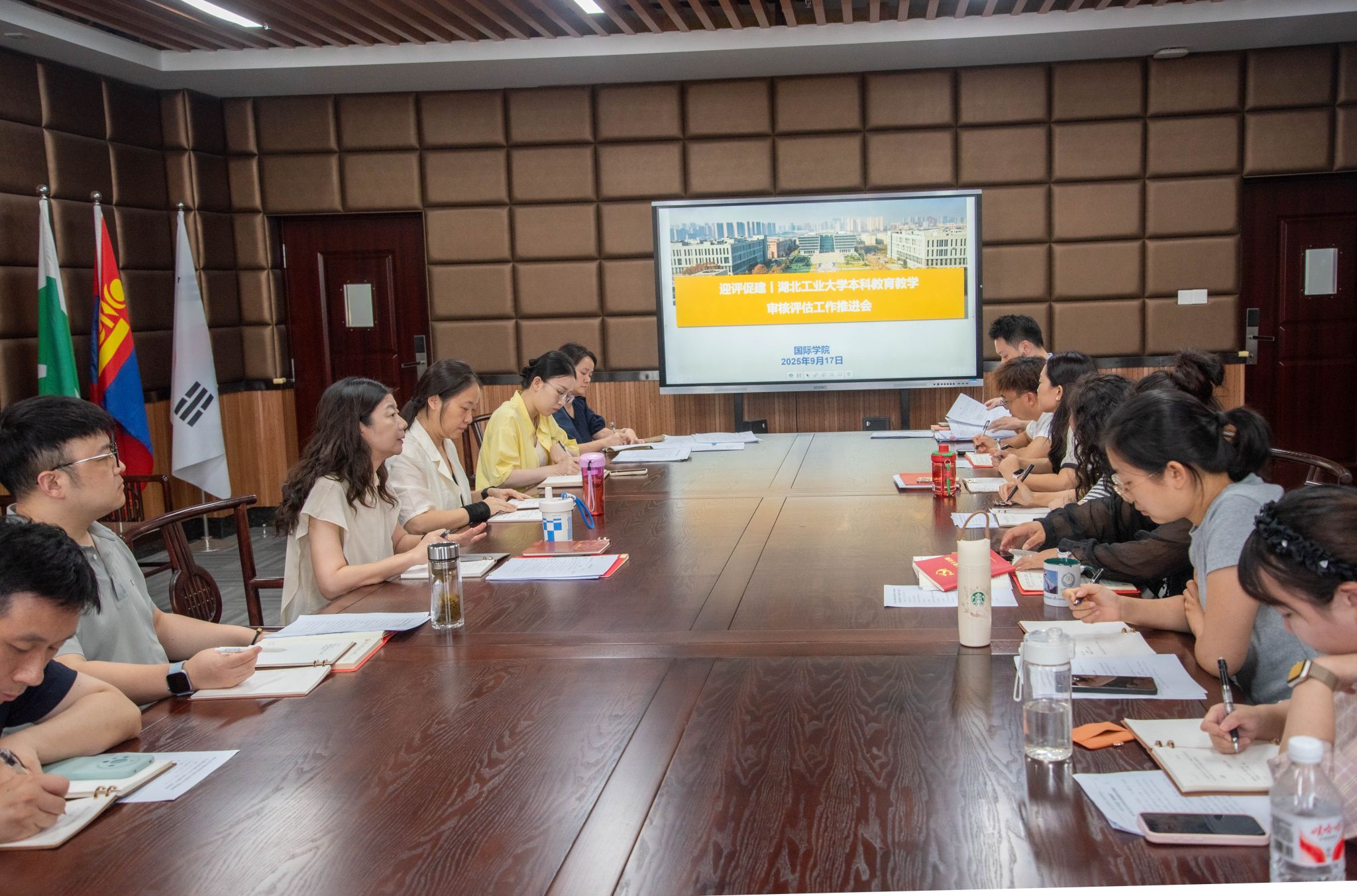 为进一步落实本科教育教学审核评估工作,积极响应学校评估部署,国际学院于2025 年 9 月 17 日下午在学院大会议室召开迎评促建|本科教育教学审核评估工作推进会,聚焦“协同校级评估、落实岗位职责”。此次会议由国际学院院长杨霞主持,国际学院副院长龙曼莉、副院长吴题及全体教职工参会。