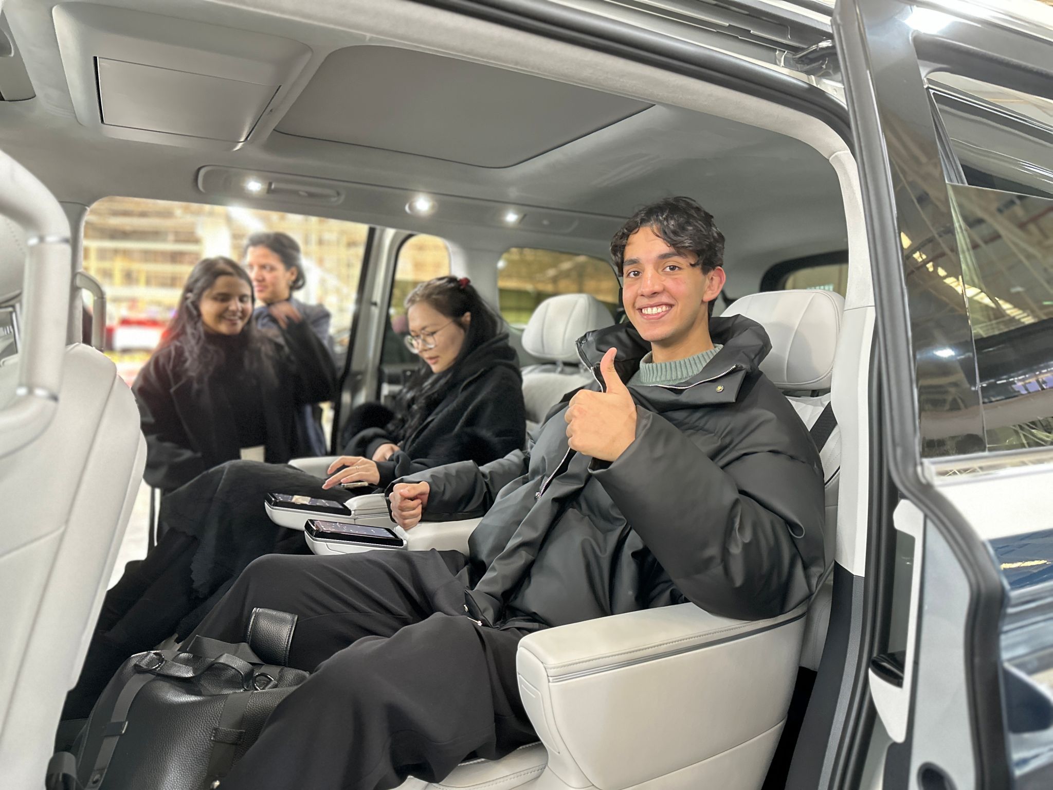 为了进一步加深同学们的体验,岚图汽车现场提供了四辆最新型车辆供学生静态试乘。同学们兴致高昂、跃跃欲试。在试乘过程中,同学们对车辆的性能、智能化功能以及环保特性赞不绝口,纷纷表示这次体验活动不仅让他们对中国汽车工业的飞速发展有了更直观的认识,也激发了他们对未来汽车科技行业的无限憧憬。