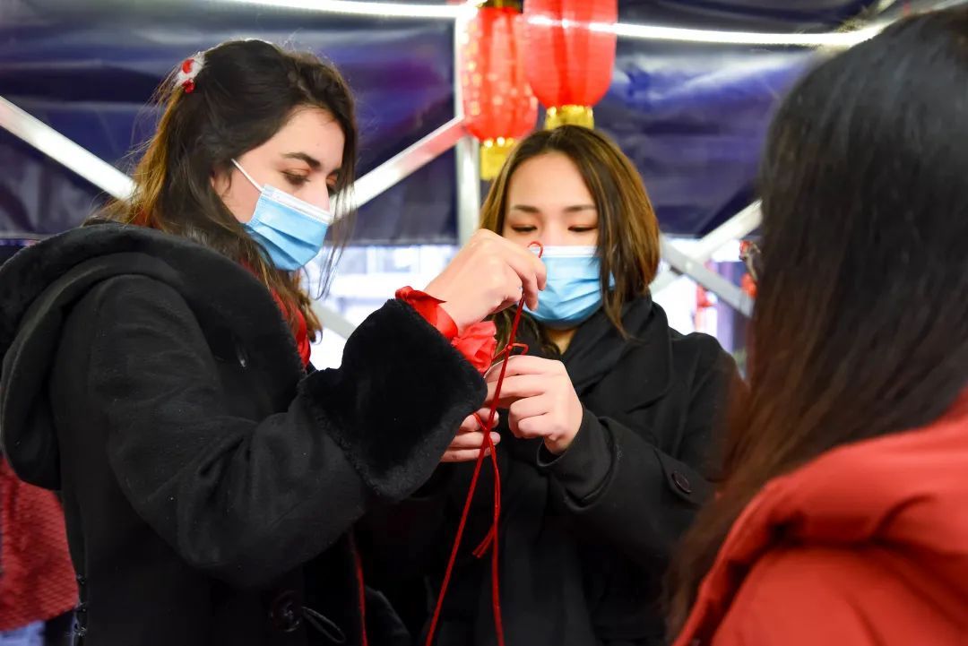 一丝一线一色,联结出和谐的意蕴,国际学生亲手编出的中国结,表达着他们对中国春节的憧憬。