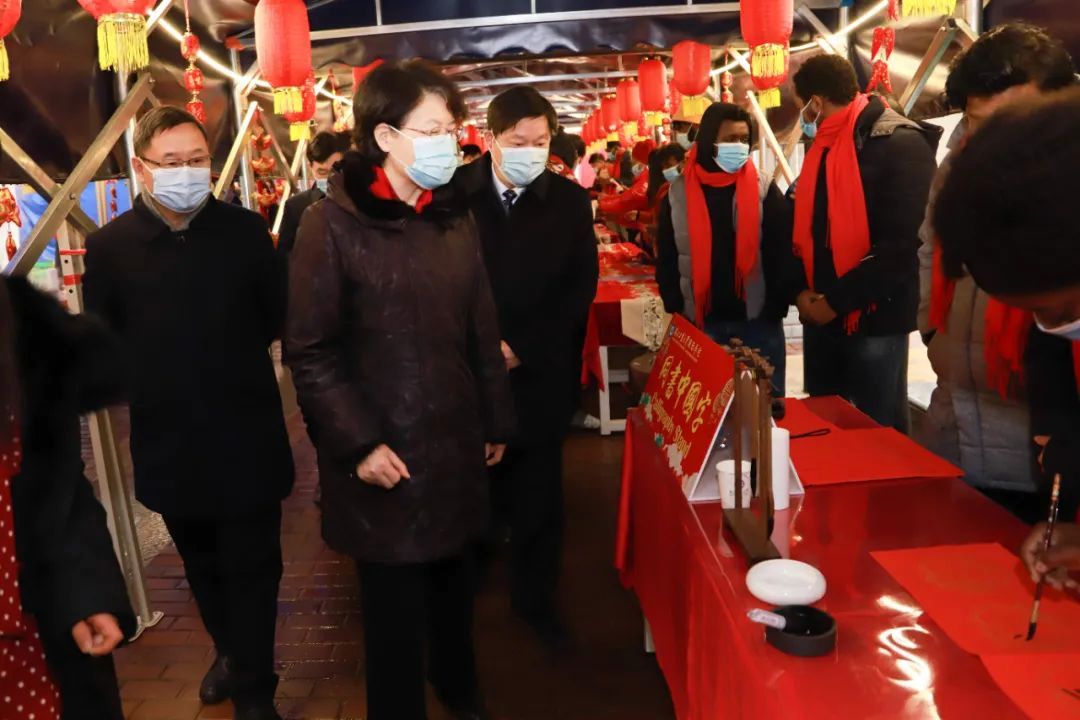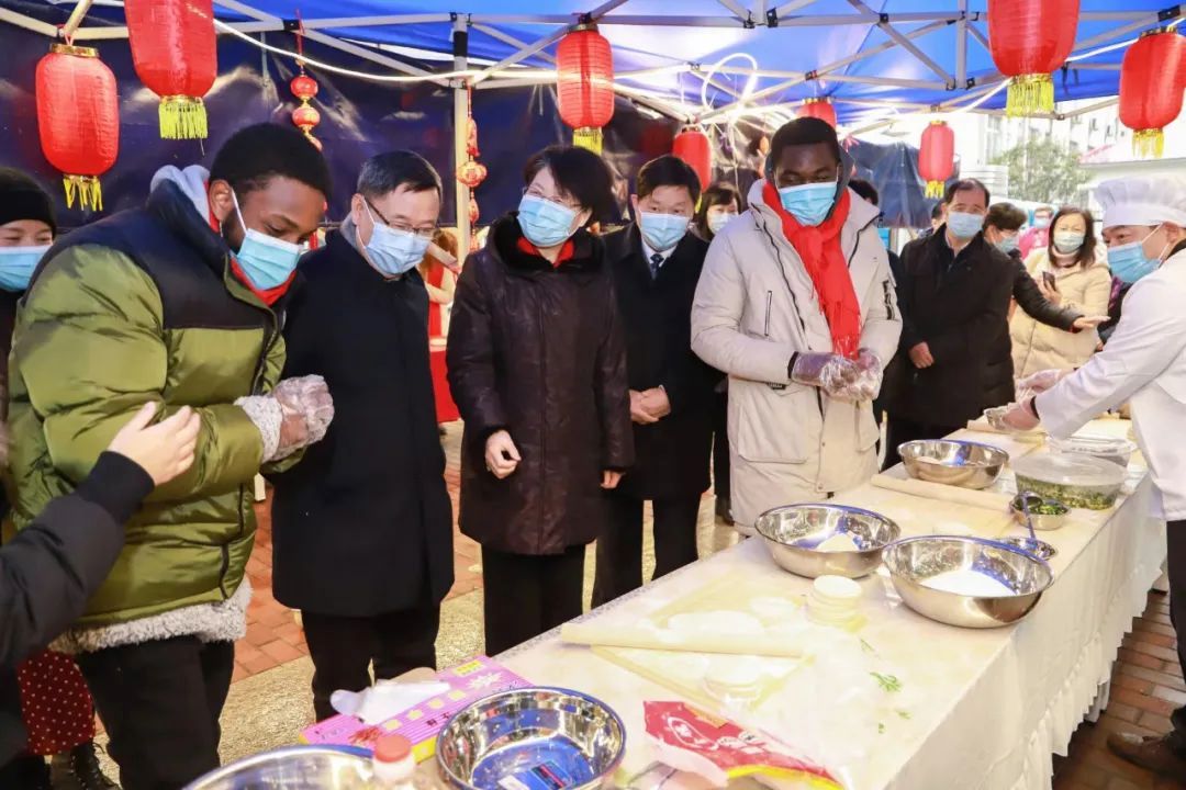 副省长肖菊华特地走到每一个文化展位前,饶有兴致地观看着国际学生编中国结、剪窗花纸、包饺子、做汤圆,与国际学生热情交谈,欣赏国际学生文化作品,关心国际学生生活学习,关切国际学生春节活动获得感,祝福国际学生们在学校过一个温暖而难忘的中国年。