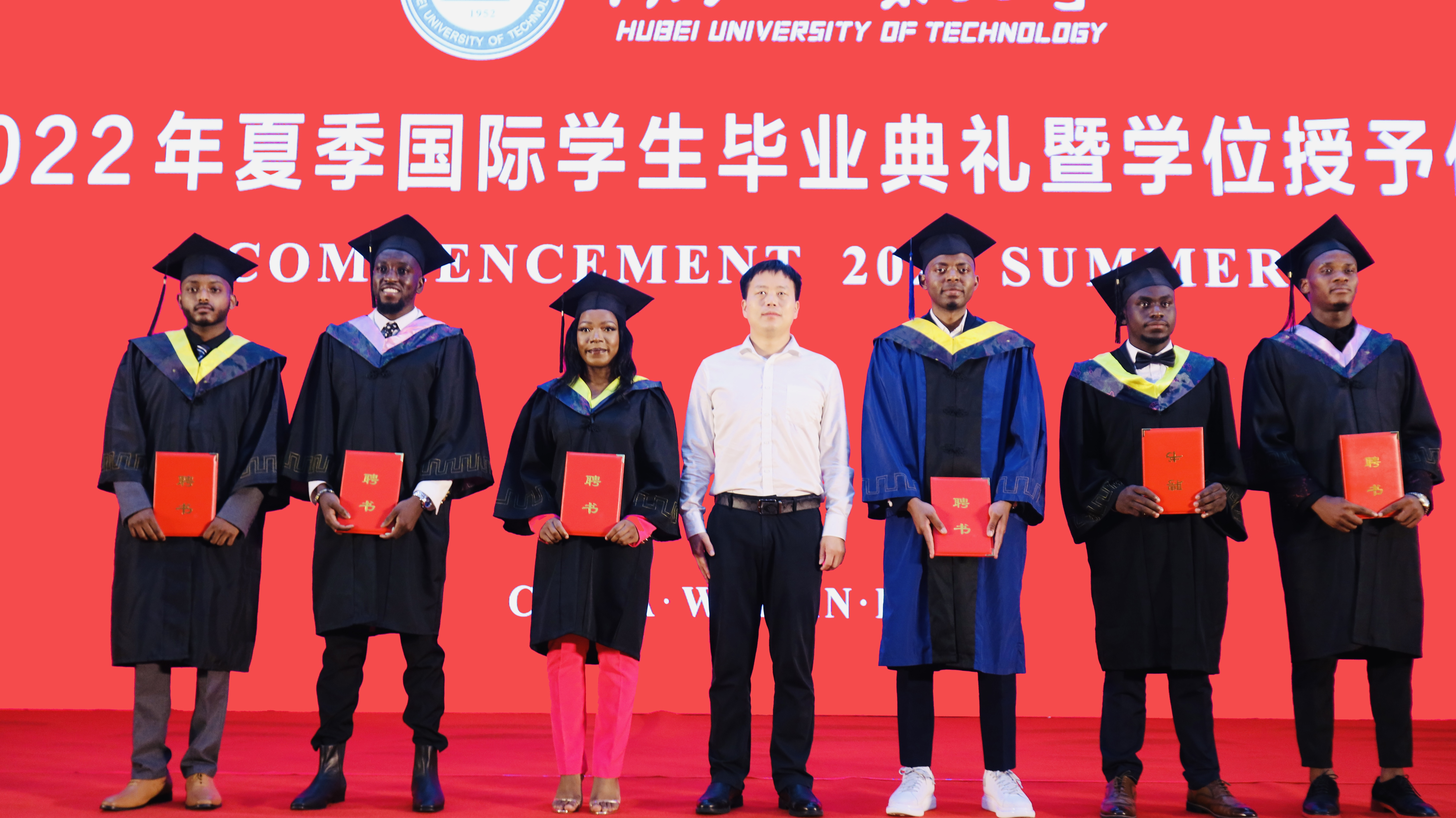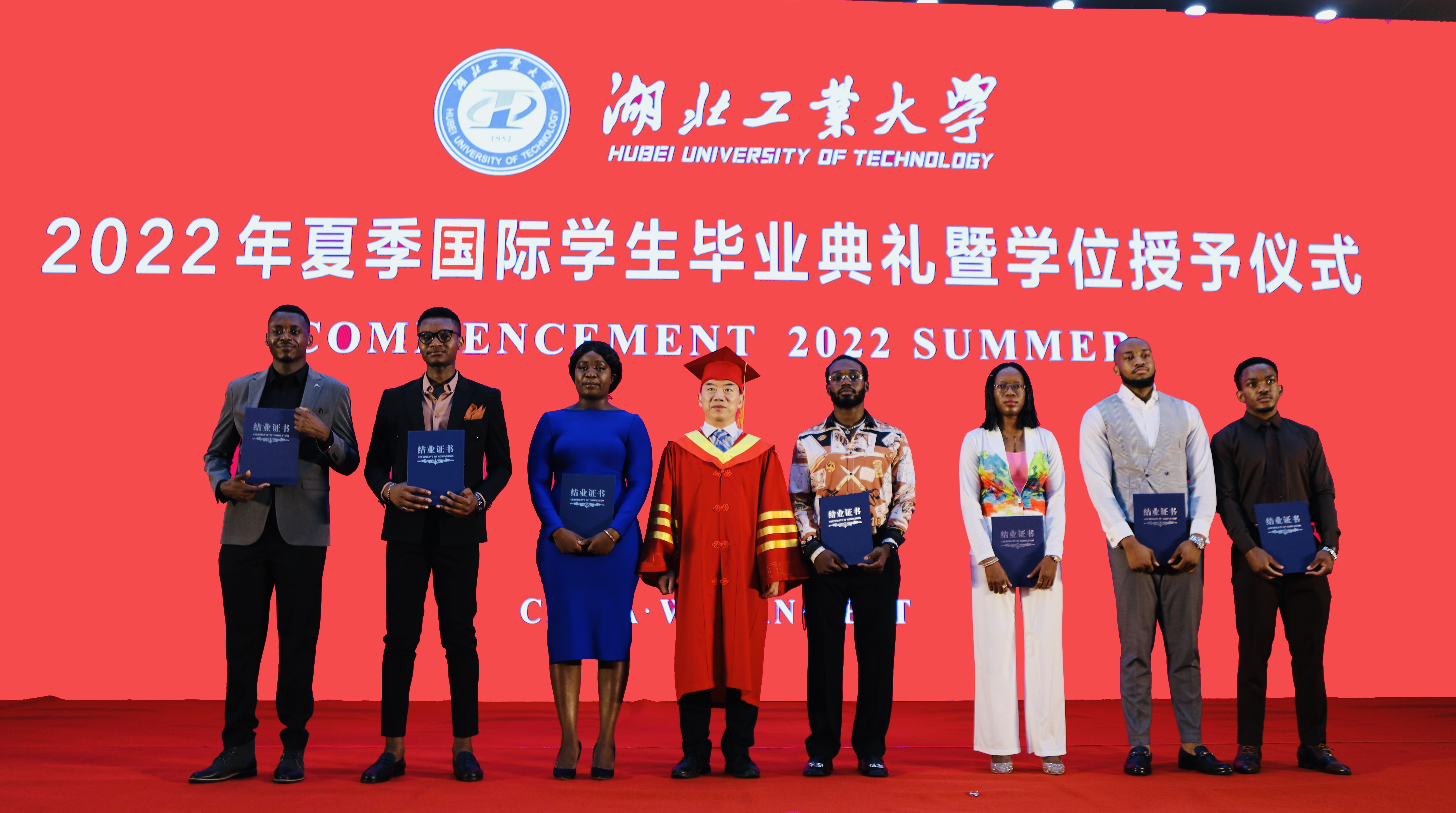 六月江城,热情似火;巡司河畔,青春盎然。6月23日,湖北工业大学2022年夏季国际学生毕业典礼暨学位授予仪式在图书馆报告厅隆重举行。校党委副书记、校长彭育园教授,校党委常委、副校长宋小春教授,校党委宣传部、学工部、保卫部、研究生工作部,教务处、国际交流与合作处、社会资源处以及各学院负责人出席了典礼。国际学院副院长马小红副教授主持典礼。
