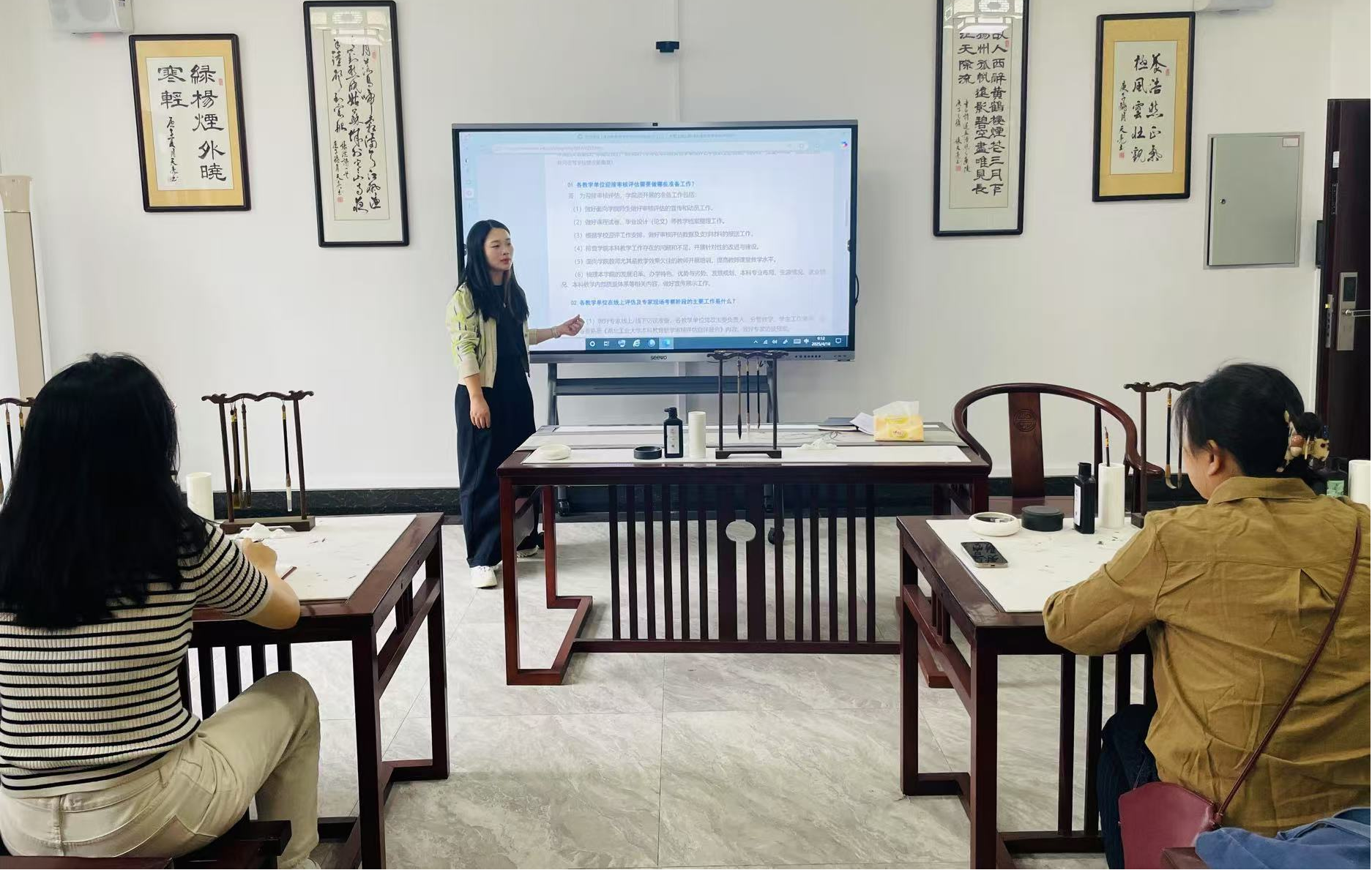 为全面贯彻落实教育部本科教育教学审核评估工作要求,在学院上下普及评估基本知识,国际学院于2025年4月16日上午9点组织教师学习审核评估知识及迎评促建 《应知应会》专项培训。本次专项培训由国际学院培养办主任王晓莉主讲,汉语教学系主任贺宇静以及其他四位学院教师参加培训。